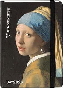 HALTADEFINIZIONE - Agenda Large Settimanale 12 Mesi, Agenda 2026 con Copertina Stampata con un'Opera d'Arte di Johannes Vermeer, Chiusura ad Elastico, Doppio Segnalibro e 192 Pagine, 13 x 21 cm, Orecchino