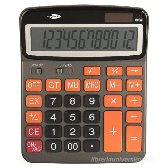 Calcolatrice da tavolo Niji Digit da 12 cifre, con tasti in plastica. Dotata di autospegnimento e di doppia alimentazione, solare e a batteria (inclusa