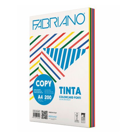 Carta A4 Fabriano Copy Tinta 200GR. 100FF. Tinte Forti 5 Colori Assortiti