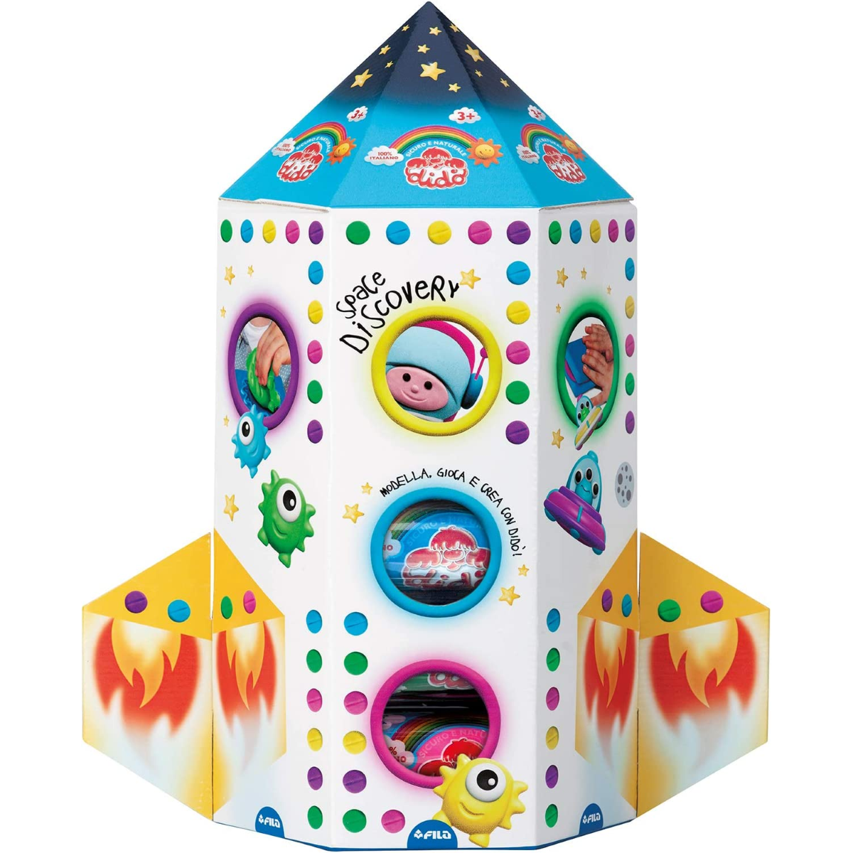 Un packaging d’impatto, che si trasforma in un razzo grazie alle ali da montare, con un ricco contenuto di pasta per giocare Didò per modellare i propri compagni di viaggio spaziale