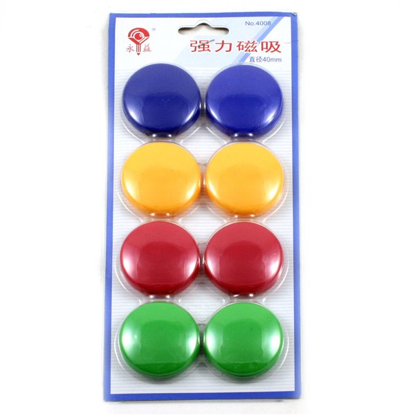 Magnetini per lavagne magnetiche diametro 40 mm assortite nei colori rosso giallo verde e blu ( 2 x colore )